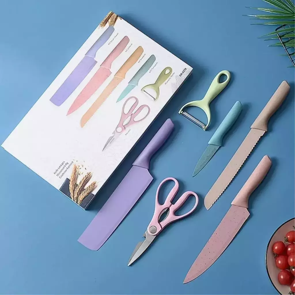 Conjunto De Facas De Cozinha Em Aço Inoxidável Colorido Multifuncional 6 peças.